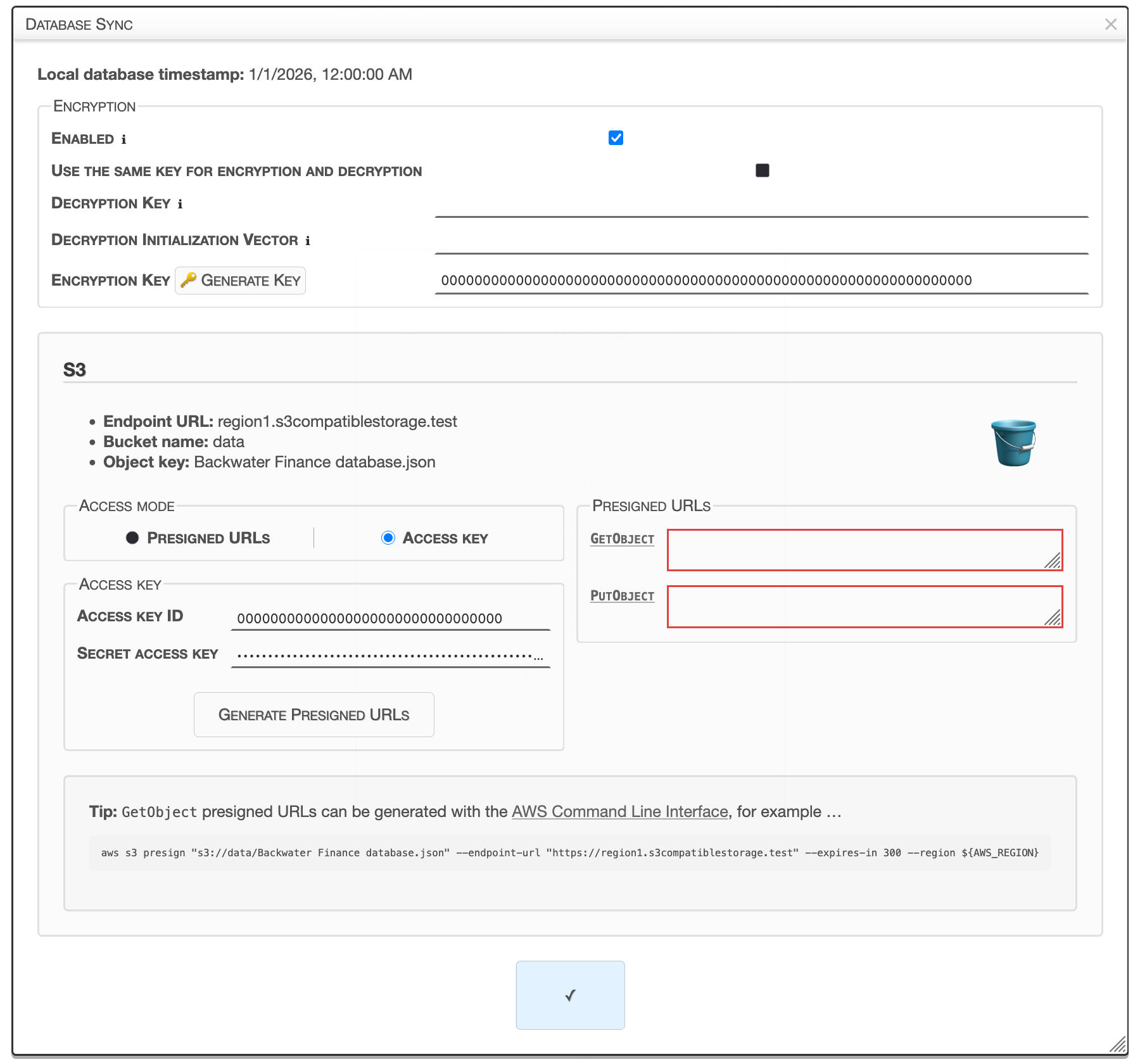 The Database Sync feature allows you to back up your data and sync your data between devices with compatible cloud storage platforms of your choice.