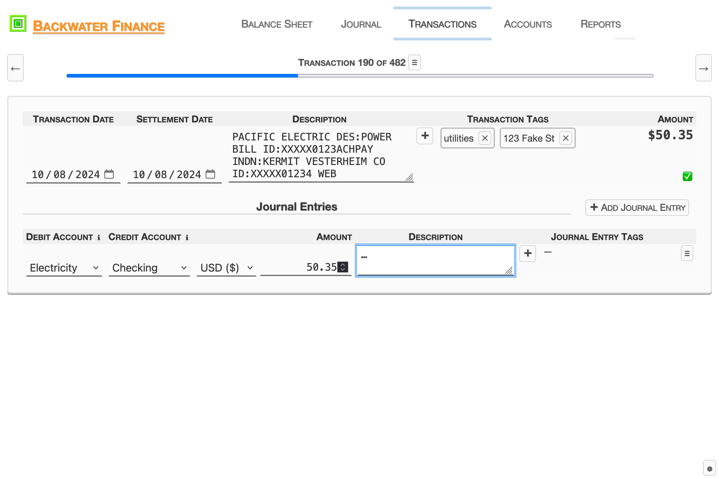 The Transactions view allows for creating, editing, and viewing a single transaction.